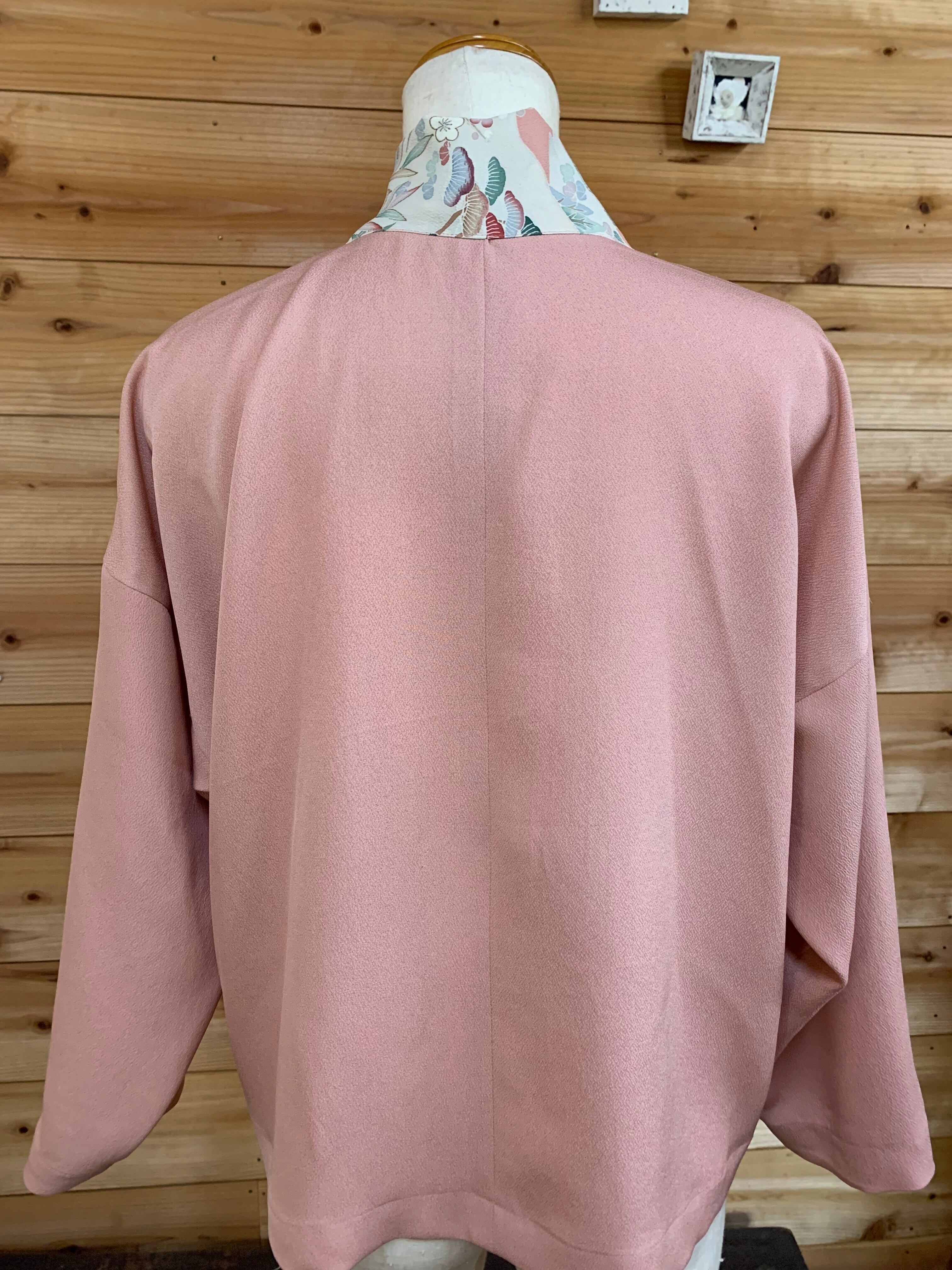 加賀友禅着物地でブラウス作りました。美しい柄を前身ごろに持ってきて、襟にも柄を配しました。ベースの色がピンクなので優しい感じのブラウスが出来上がりました。この着物地は色留め袖用に作られた着物なのでフォーマルな場にも対応します。